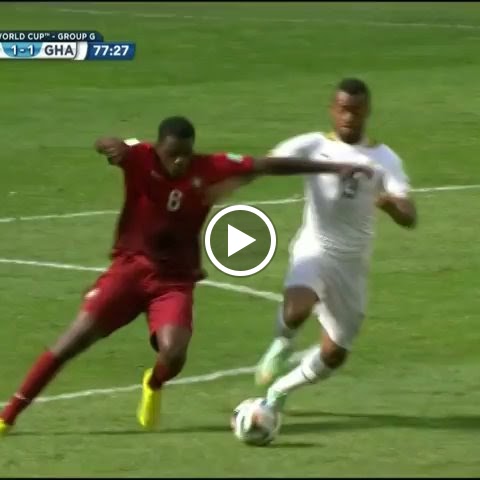 During the game between Portugal and Ghana yesterday June 26th at the ongoing World Cup in Brazil, Portuguese player William Carvalho in an attempt to get the ball grabbed Ghanaian player Jordan Ayew's shorts, putting his privates in full display to the delights of millions of female football fans watching from around the world. Some girls are so lucky! *sigh* See more photos and the vine video after the cut...