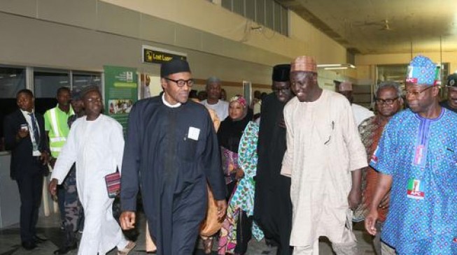 APC Flag Bearer Gen. Buhari Arrives Nnamdi Azikiwe Int'l Airport From His London Medical Trip