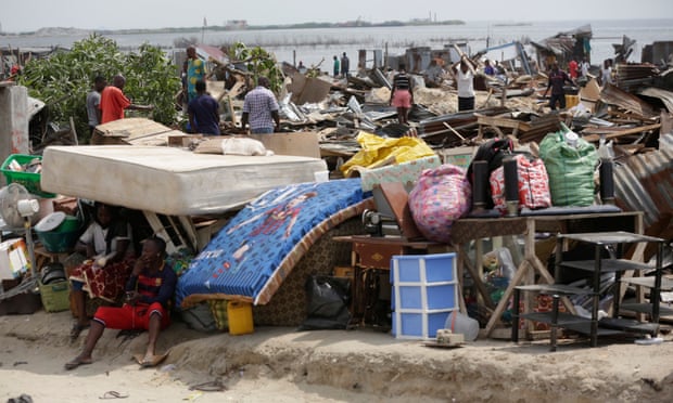 “The children were still sleeping inside when the demolishers started tearing their house apart,” Pastor Ashegbon, a resident of Otodo Gbame, told the Guardian in May, while Pastor Mallon Agbejoye said: “We sleep in these piles of ruins. When it gets dark we make tents of mosquito nets and sleep inside them with our children. We are stranded with our family with no money and no shelter. Accommodation inside the city is expensive and we cannot afford it.”